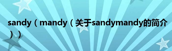 大家好,sandy mandy,關于sandy mandy的簡介很多人還不知道,現在讓我們一起來看看吧!