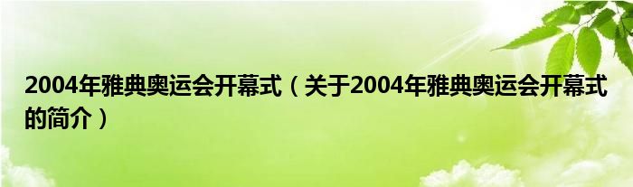 本文關于2004年雅典奧運會開幕式的簡介就講解完畢,希望對大家有所幫助。