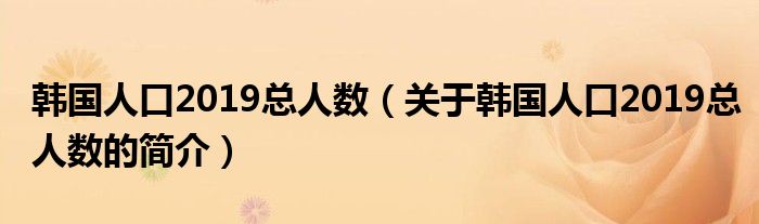 大家好,韓國人口2019總人數,關于韓國人口2019總人數的簡介很多人還不知道,現在讓我們一起來看看吧!