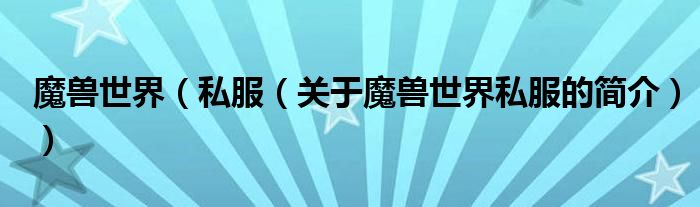 本文關(guān)于魔獸世界 私服的簡介就講解完畢,希望對大家有所幫助。