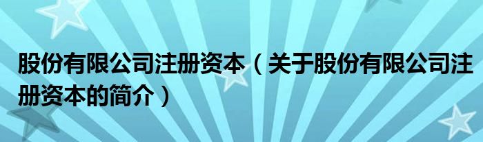 本文關(guān)于股份有限公司注冊資本的簡介就講解完畢,希望對大家有所幫助。