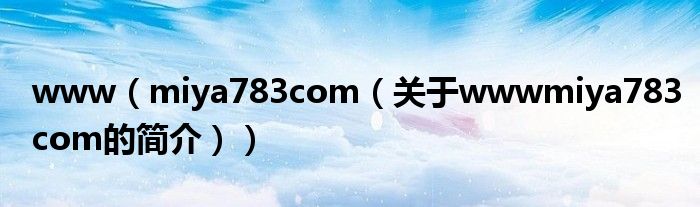 大家好,www miya783 com,關于www miya783 com的簡介很多人還不知道,現在讓我們一起來看看吧!