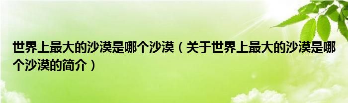 本文關于世界上最大的沙漠是哪個沙漠的簡介就講解完畢,希望對大家有所幫助。