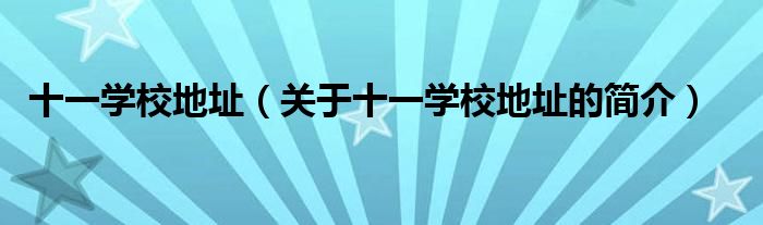 本文關(guān)于十一學(xué)校地址的簡介就講解完畢,希望對大家有所幫助。