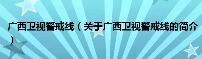 大家好,廣西衛視警戒線,關于廣西衛視警戒線的簡介很多人還不知道,現在讓我們一起來看看吧!