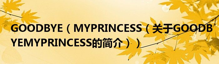 本文關于GOODBYE MY PRINCESS的簡介就講解完畢,希望對大家有所幫助。