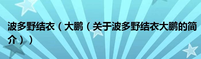 大家好,波多野結衣 大鵬,關于波多野結衣 大鵬的簡介很多人還不知道,現在讓我們一起來看看吧!