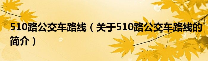 本文關于510路公交車路線的簡介就講解完畢,希望對大家有所幫助。