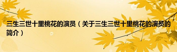 大家好,三生三世十里桃花的演員,關(guān)于三生三世十里桃花的演員的簡(jiǎn)介很多人還不知道,現(xiàn)在讓我們一起來(lái)看看吧!