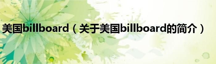 大家好,美國(guó)billboard,關(guān)于美國(guó)billboard的簡(jiǎn)介很多人還不知道,現(xiàn)在讓我們一起來(lái)看看吧!