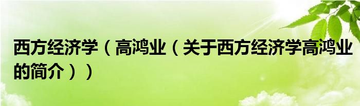 本文關于西方經濟學 高鴻業的簡介就講解完畢,希望對大家有所幫助。