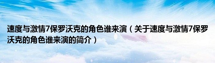 本文關于速度與激情7保羅沃克的角色誰來演的簡介就講解完畢,希望對大家有所幫助。