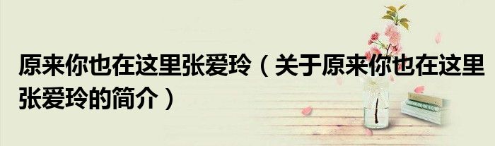 大家好,原來你也在這里張愛玲,關于原來你也在這里張愛玲的簡介很多人還不知道,現在讓我們一起來看看吧!