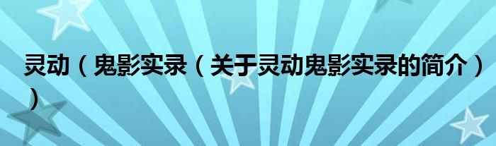 大家好,靈動 鬼影實錄,關于靈動 鬼影實錄的簡介很多人還不知道,現在讓我們一起來看看吧!
