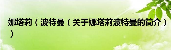 大家好,娜塔莉 波特曼,關(guān)于娜塔莉 波特曼的簡介很多人還不知道,現(xiàn)在讓我們一起來看看吧!