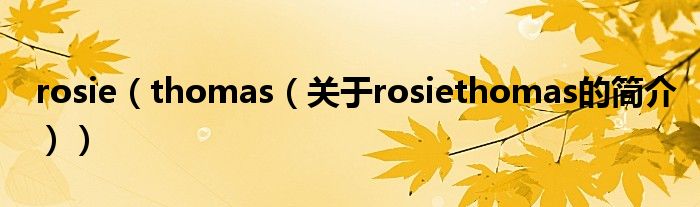 大家好,rosie thomas,關于rosie thomas的簡介很多人還不知道,現在讓我們一起來看看吧!