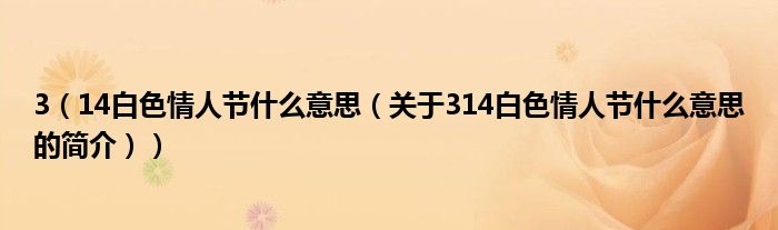 本文關于3 14白色情人節什么意思的簡介就講解完畢,希望對大家有所幫助。