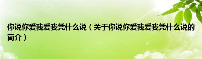 大家好,你說你愛我愛我憑什么說,關于你說你愛我愛我憑什么說的簡介很多人還不知道,現在讓我們一起來看看吧!