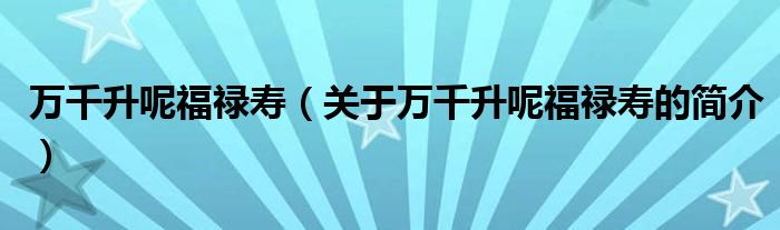 本文關(guān)于萬千升呢福祿壽的簡介就講解完畢,希望對大家有所幫助。