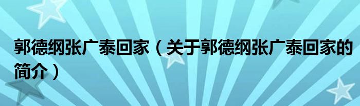 本文關于郭德綱張廣泰回家的簡介就講解完畢,希望對大家有所幫助。