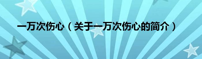 大家好,一萬次傷心,關(guān)于一萬次傷心的簡介很多人還不知道,現(xiàn)在讓我們一起來看看吧!