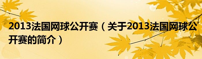 本文關于2013法國網球公開賽的簡介就講解完畢,希望對大家有所幫助。
