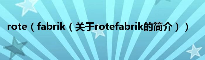 大家好,rote fabrik,關于rote fabrik的簡介很多人還不知道,現在讓我們一起來看看吧!