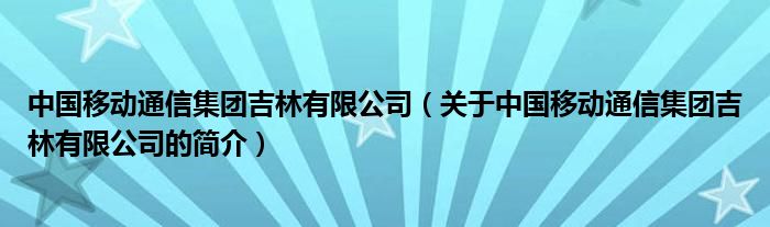 本文關于中國移動通信集團吉林有限公司的簡介就講解完畢,希望對大家有所幫助。