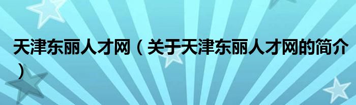 本文關(guān)于天津東麗人才網(wǎng)的簡(jiǎn)介就講解完畢,希望對(duì)大家有所幫助。