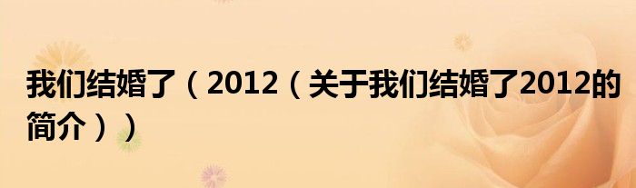 大家好,我們結婚了 2012,關于我們結婚了 2012的簡介很多人還不知道,現在讓我們一起來看看吧!