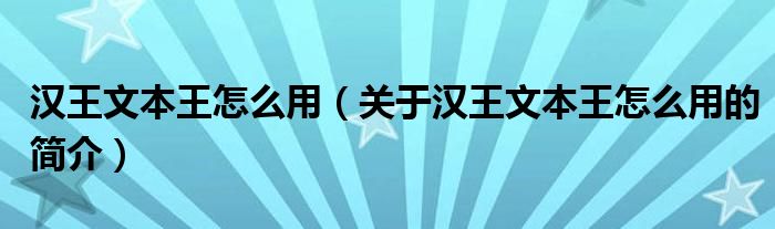 本文關于漢王文本王怎么用的簡介就講解完畢,希望對大家有所幫助。