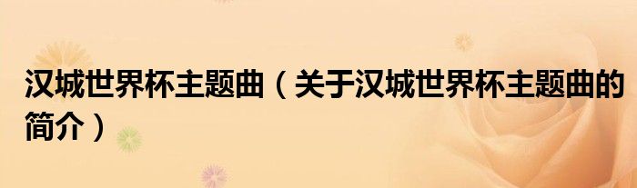 本文關于漢城世界杯主題曲的簡介就講解完畢,希望對大家有所幫助。