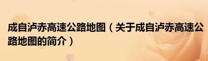 本文關于成自瀘赤高速公路地圖的簡介就講解完畢,希望對大家有所幫助。