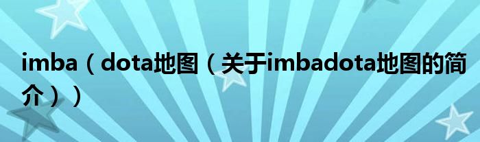 1、DotA IMBA地圖是DotA娛樂地圖的一種,其中英雄的技能都非常的IMBA,故此被叫做DotA IMBA版本。