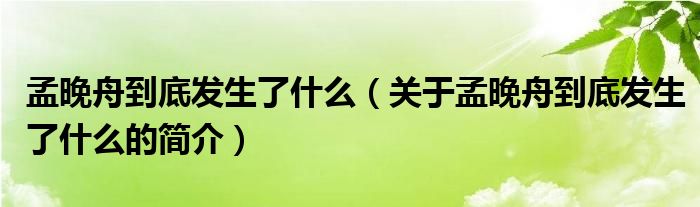 大家好,孟晚舟到底發(fā)生了什么,關于孟晚舟到底發(fā)生了什么的簡介很多人還不知道,現(xiàn)在讓我們一起來看看吧!