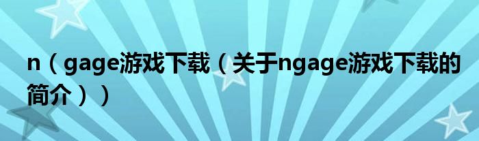 本文關于n gage游戲下載的簡介就講解完畢,希望對大家有所幫助。