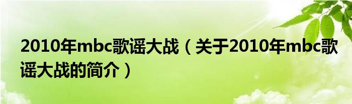 本文關(guān)于2010年mbc歌謠大戰(zhàn)的簡(jiǎn)介就講解完畢,希望對(duì)大家有所幫助。
