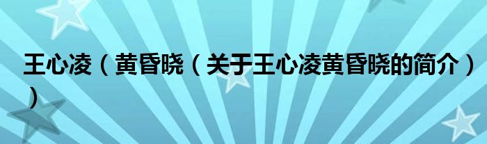 大家好,王心凌 黃昏曉,關于王心凌 黃昏曉的簡介很多人還不知道,現在讓我們一起來看看吧!