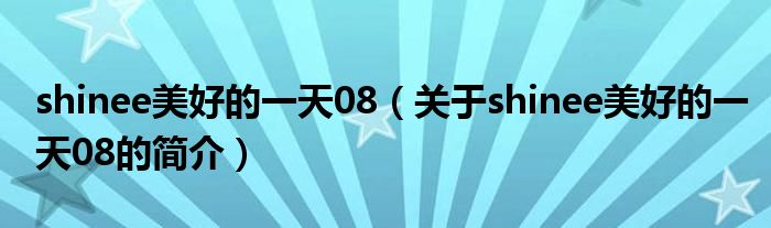 本文關于shinee美好的一天08的簡介就講解完畢,希望對大家有所幫助。