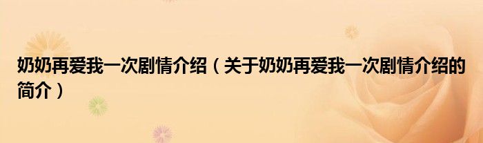 本文關(guān)于奶奶再愛我一次劇情介紹的簡介就講解完畢,希望對大家有所幫助。
