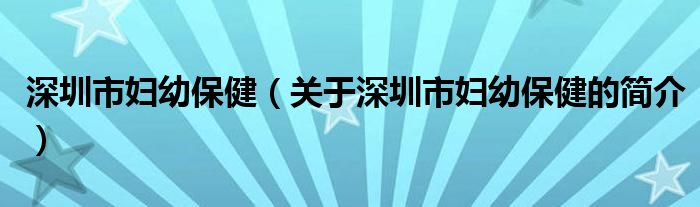 大家好,深圳市婦幼保健,關于深圳市婦幼保健的簡介很多人還不知道,現在讓我們一起來看看吧!