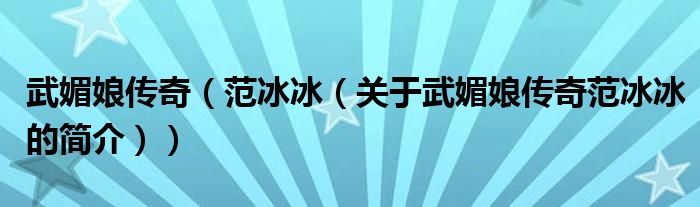 大家好,武媚娘傳奇 范冰冰,關(guān)于武媚娘傳奇 范冰冰的簡(jiǎn)介很多人還不知道,現(xiàn)在讓我們一起來看看吧!