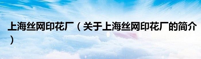 本文關于上海絲網印花廠的簡介就講解完畢,希望對大家有所幫助。