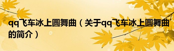 本文關于qq飛車冰上圓舞曲的簡介就講解完畢,希望對大家有所幫助。