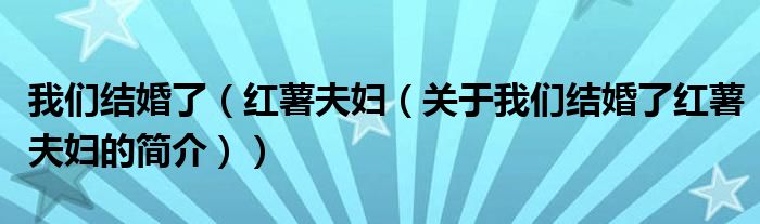 大家好,我們結婚了 紅薯夫婦,關于我們結婚了 紅薯夫婦的簡介很多人還不知道,現在讓我們一起來看看吧!