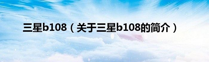 大家好,三星b108,關于三星b108的簡介很多人還不知道,現在讓我們一起來看看吧!