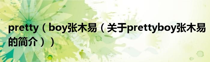 本文關于pretty boy 張木易的簡介就講解完畢,希望對大家有所幫助。