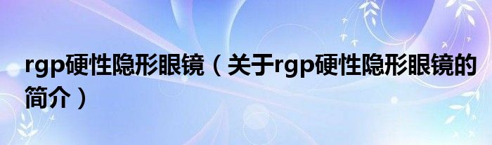 本文關(guān)于rgp硬性隱形眼鏡的簡介就講解完畢,希望對(duì)大家有所幫助。