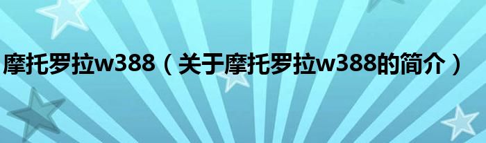 本文關于摩托羅拉w388的簡介就講解完畢,希望對大家有所幫助。