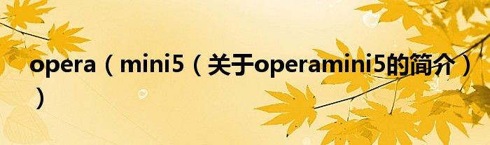 大家好,opera mini5,關于opera mini5的簡介很多人還不知道,現在讓我們一起來看看吧!